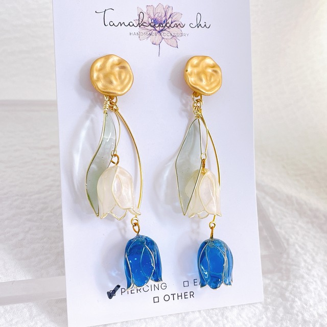 【在庫限り】 青と白のチューリップちゃん ワイヤーフラワー アクセサリー