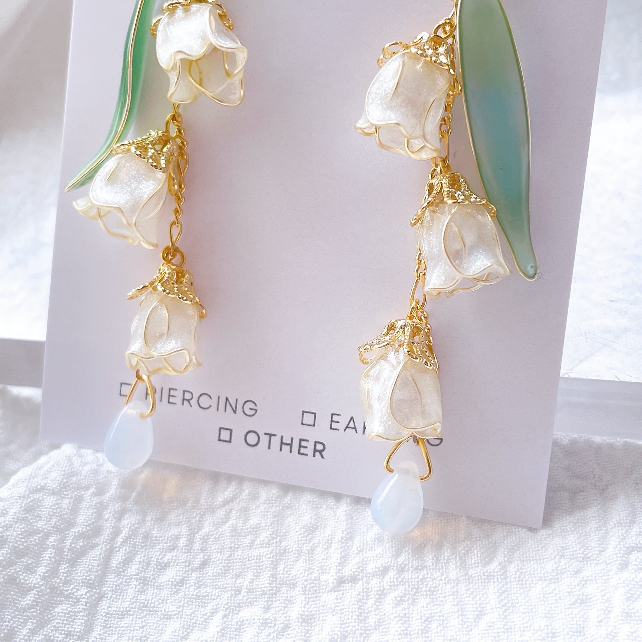 しゃら~んとしたスズランのイヤーアイテムです♡