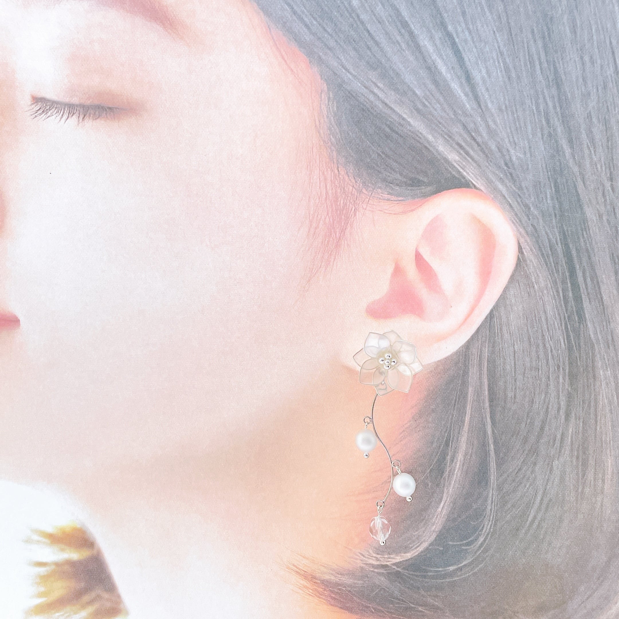こちらのアクセサリーも、その花弁ひとつひとつが全て異なったカラーをしており、世界に1つだけのオリジナルデザインとなっておりますෆ˚*