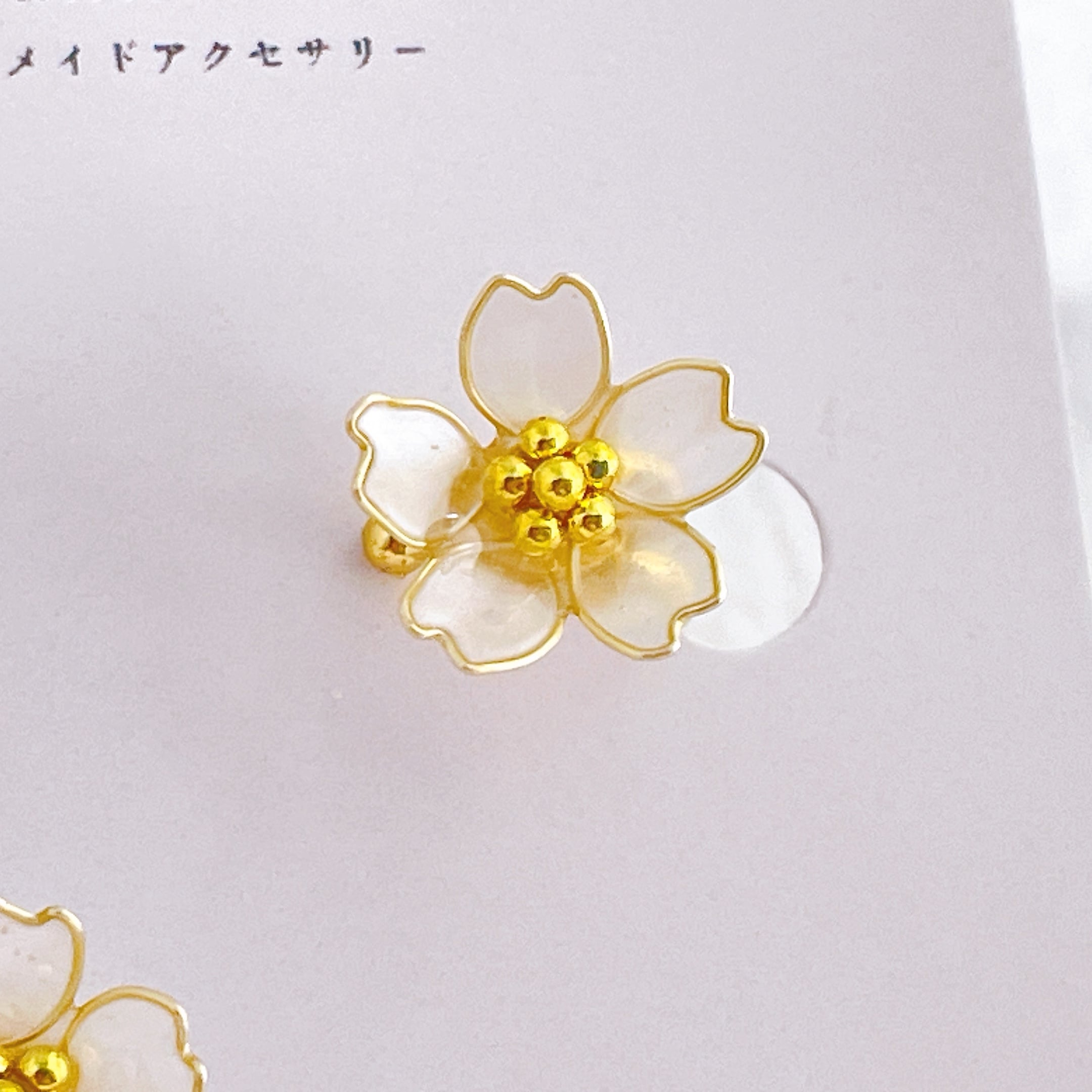 【ホワイト】4点セット♡桜のイヤーカフ&イヤーアクセサリー フラワーアクセサリー ワイヤーフラワー アクセサリー