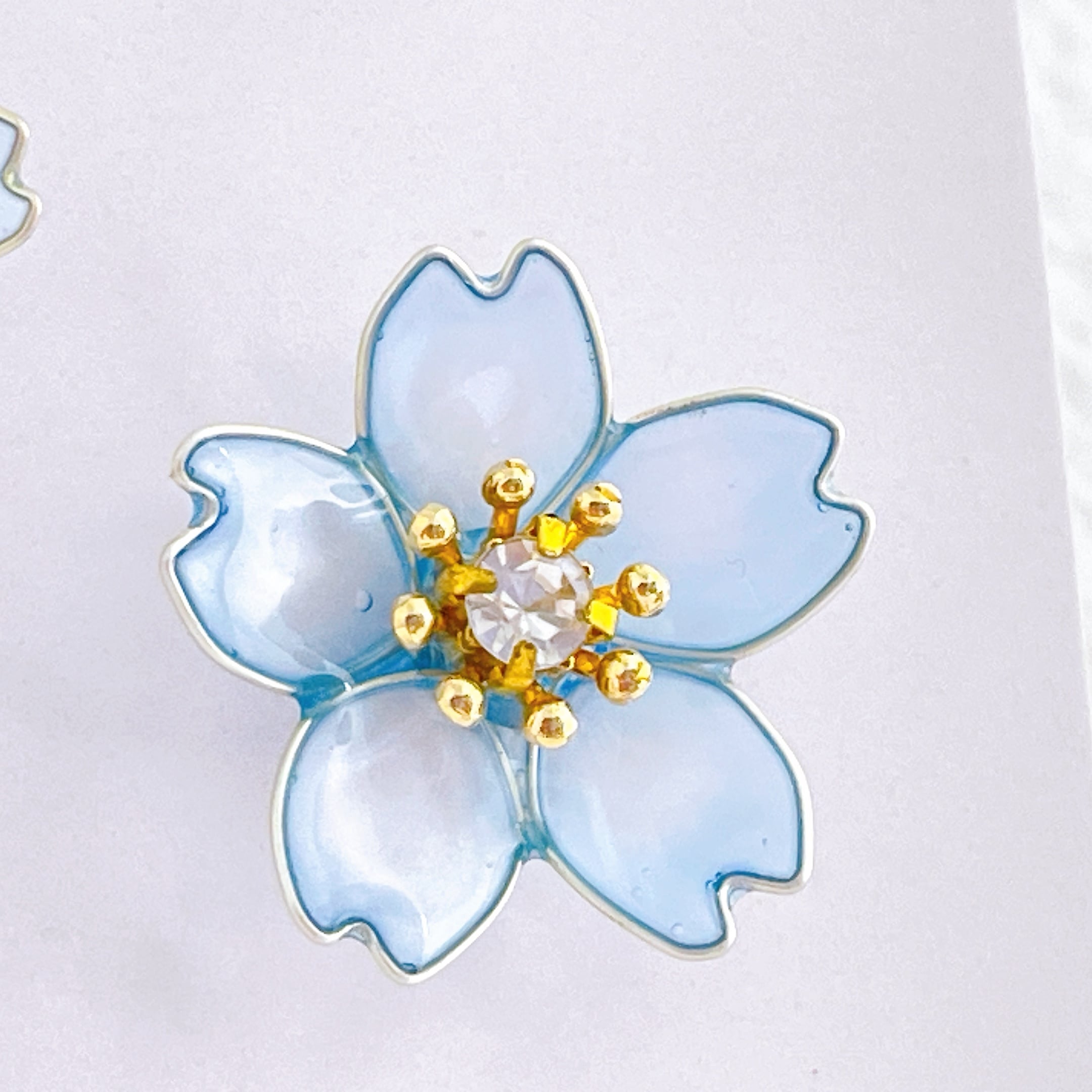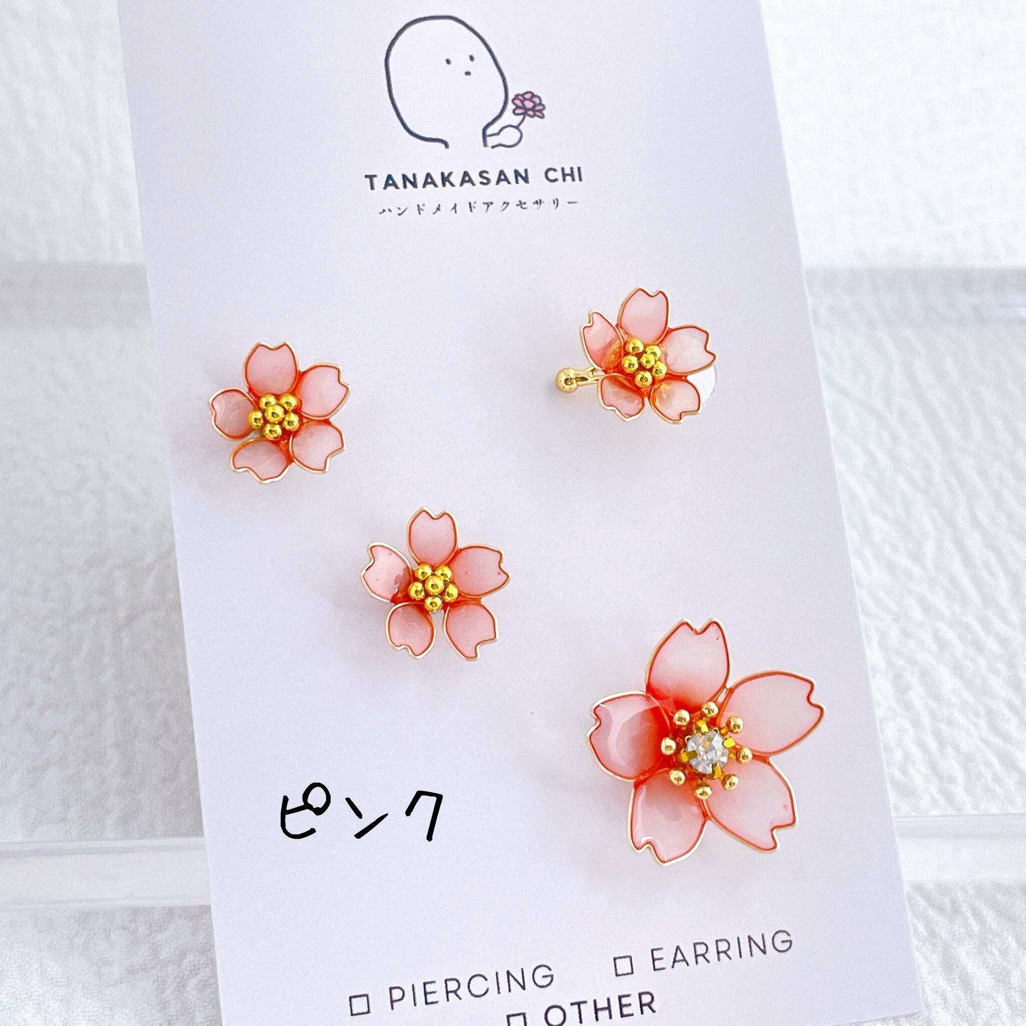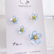 【ブルー】4点セット♡桜のイヤーカフ&イヤーアクセサリー フラワーアクセサリー ワイヤーフラワー アクセサリー