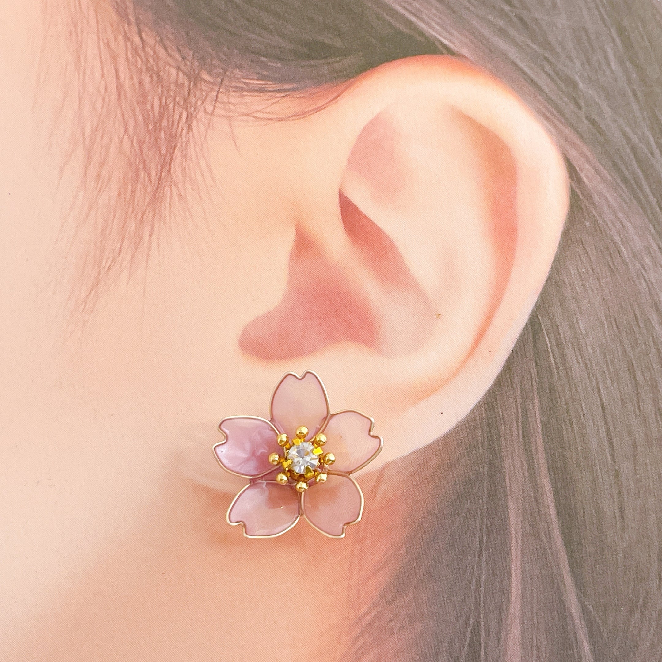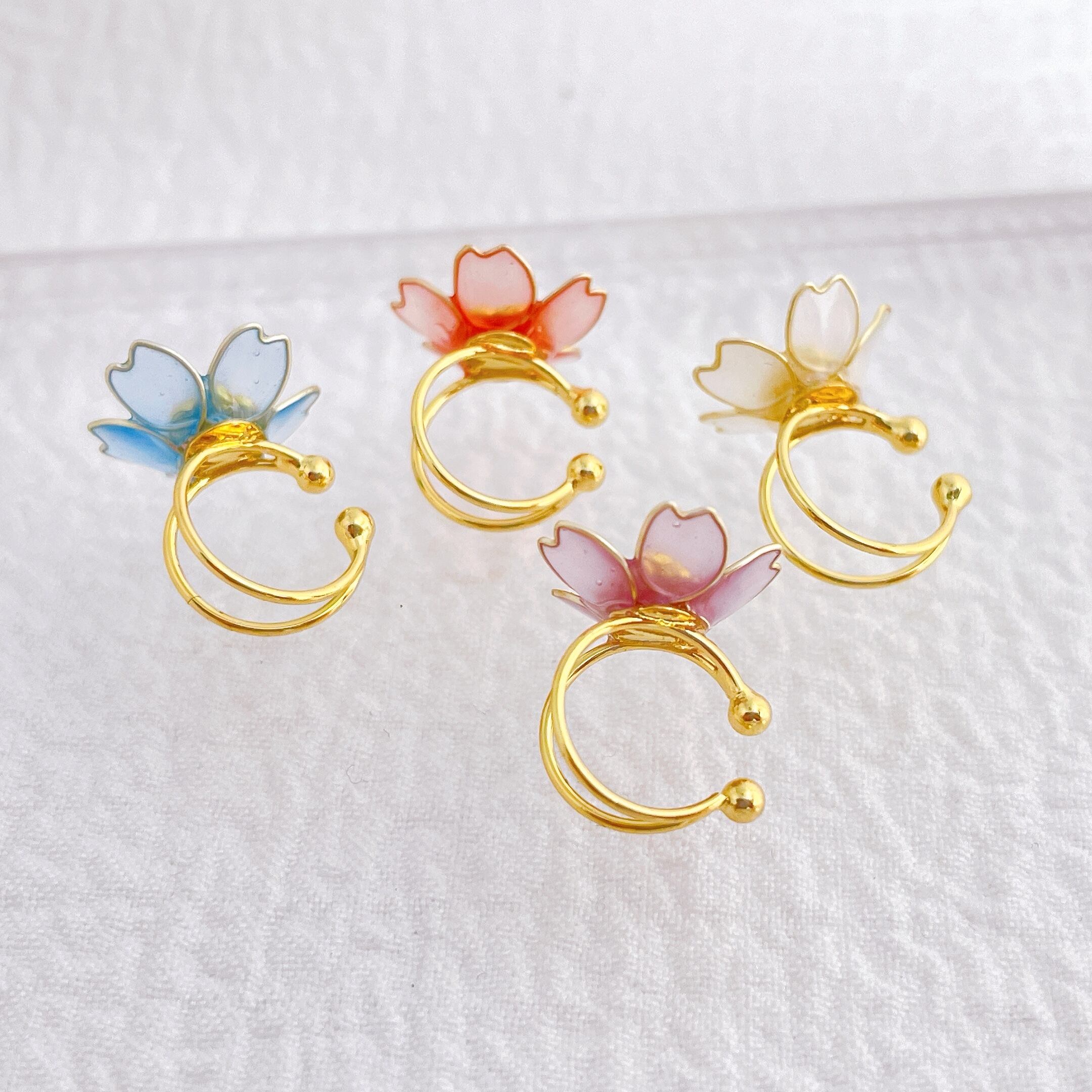【パープル】4点セット♡桜のイヤーカフ&イヤーアクセサリー フラワーアクセサリー ワイヤーフラワー アクセサリー