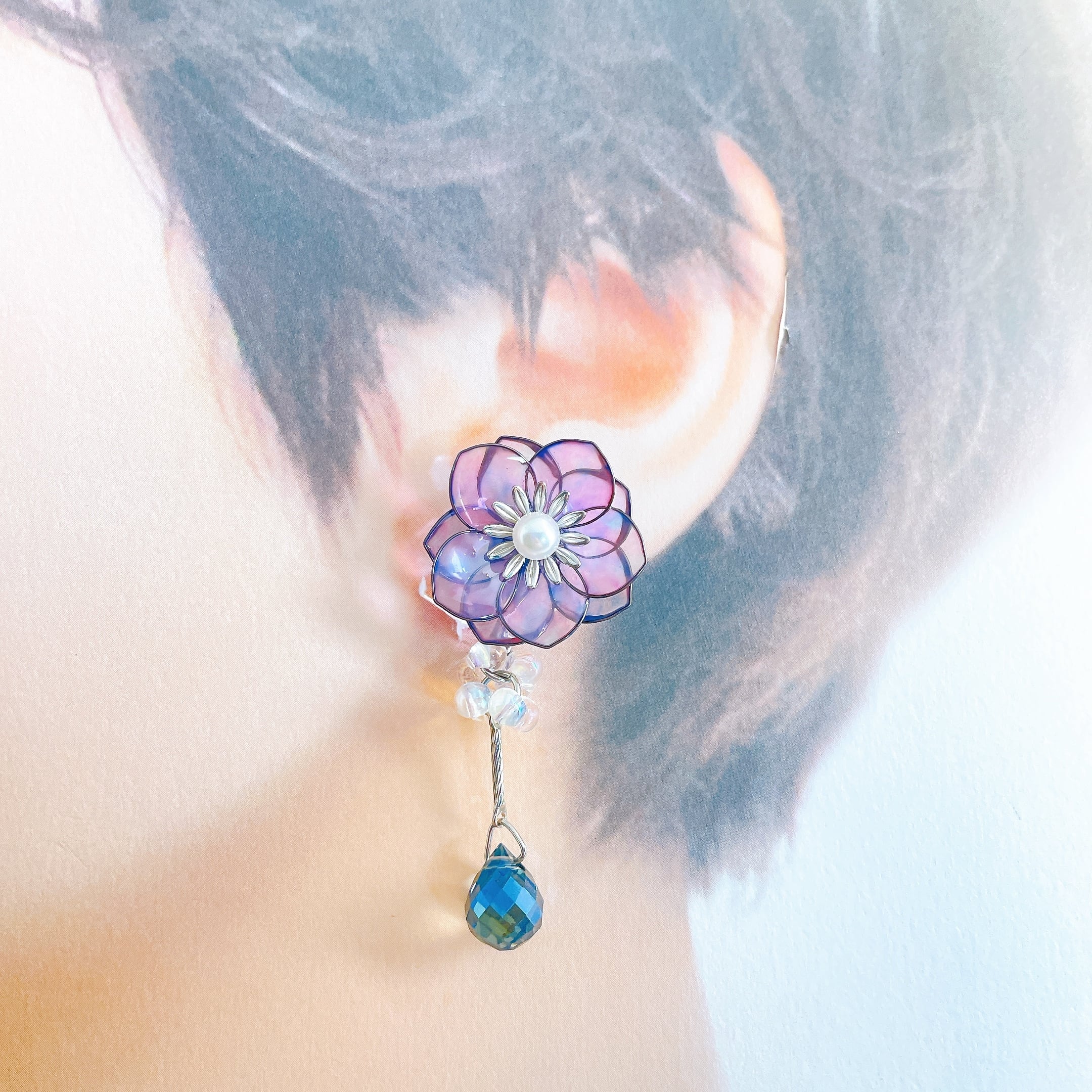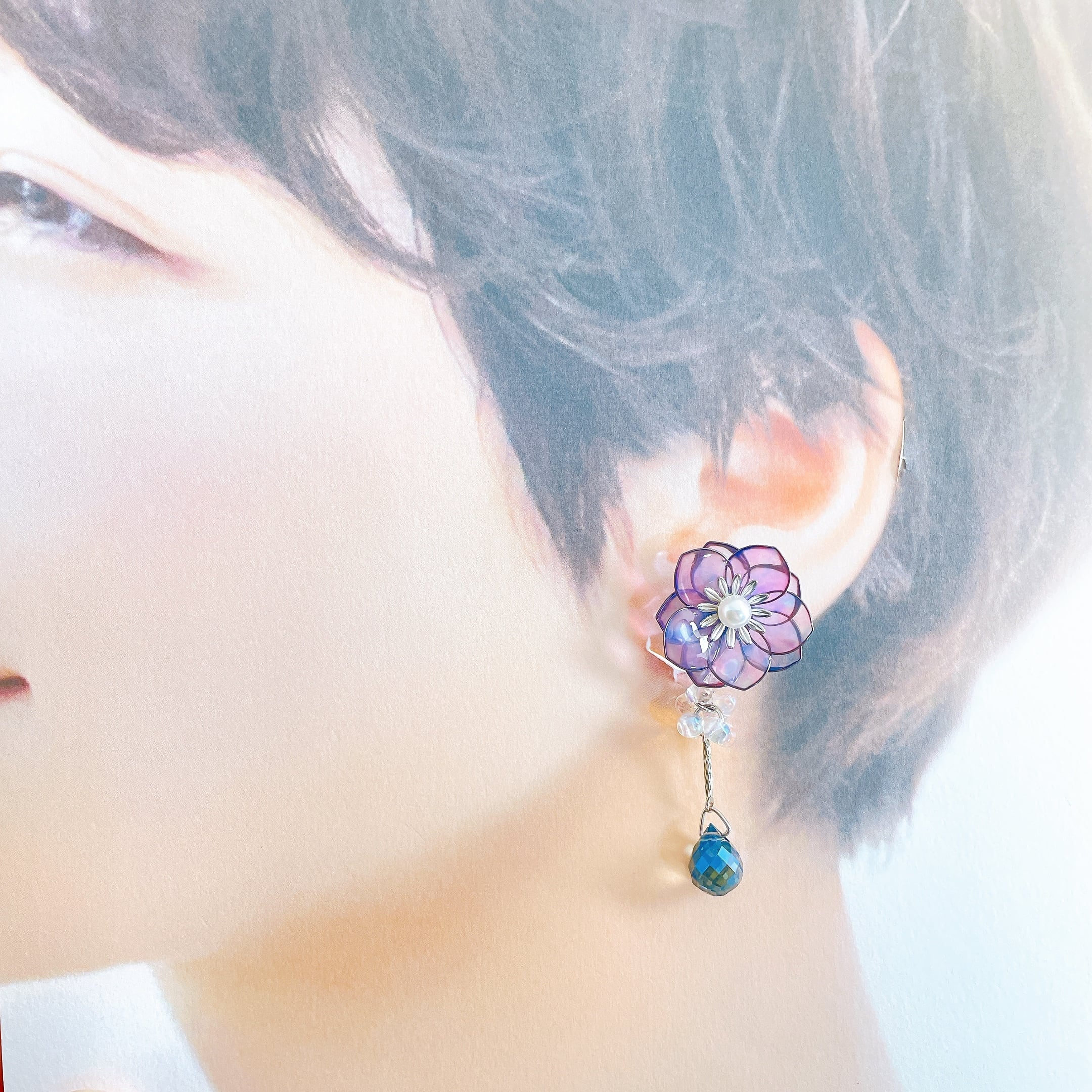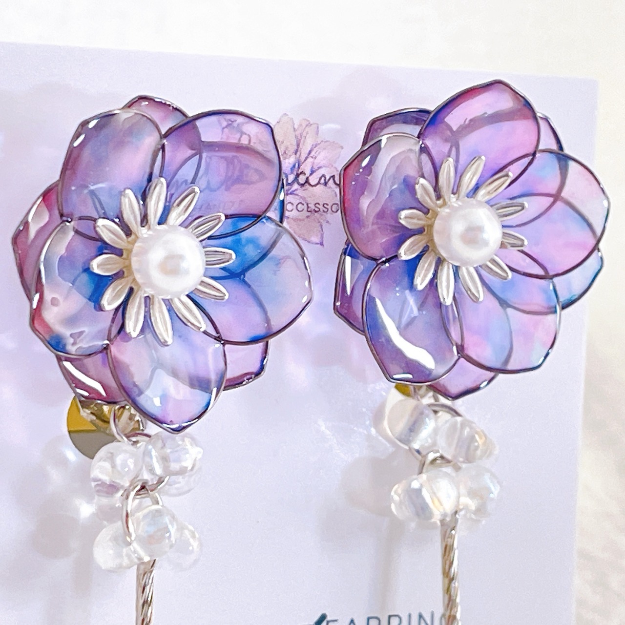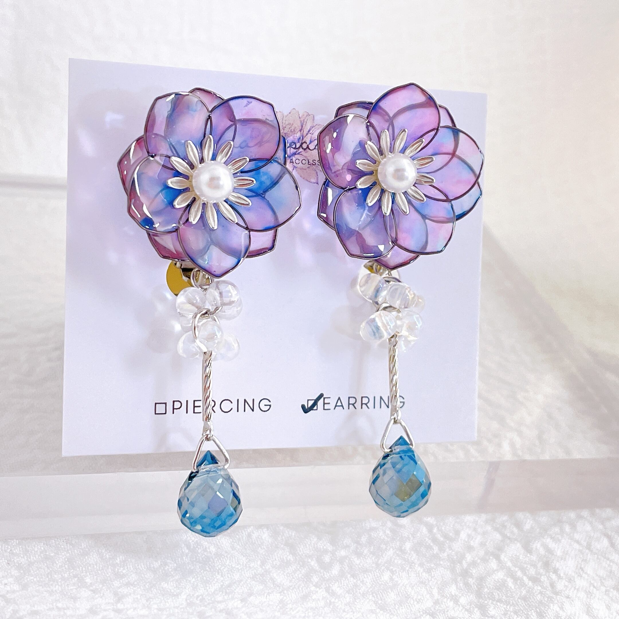 【在庫限り】イヤリングのみ グラデーションカラーのお花 ワイヤーフラワー アクセサリー