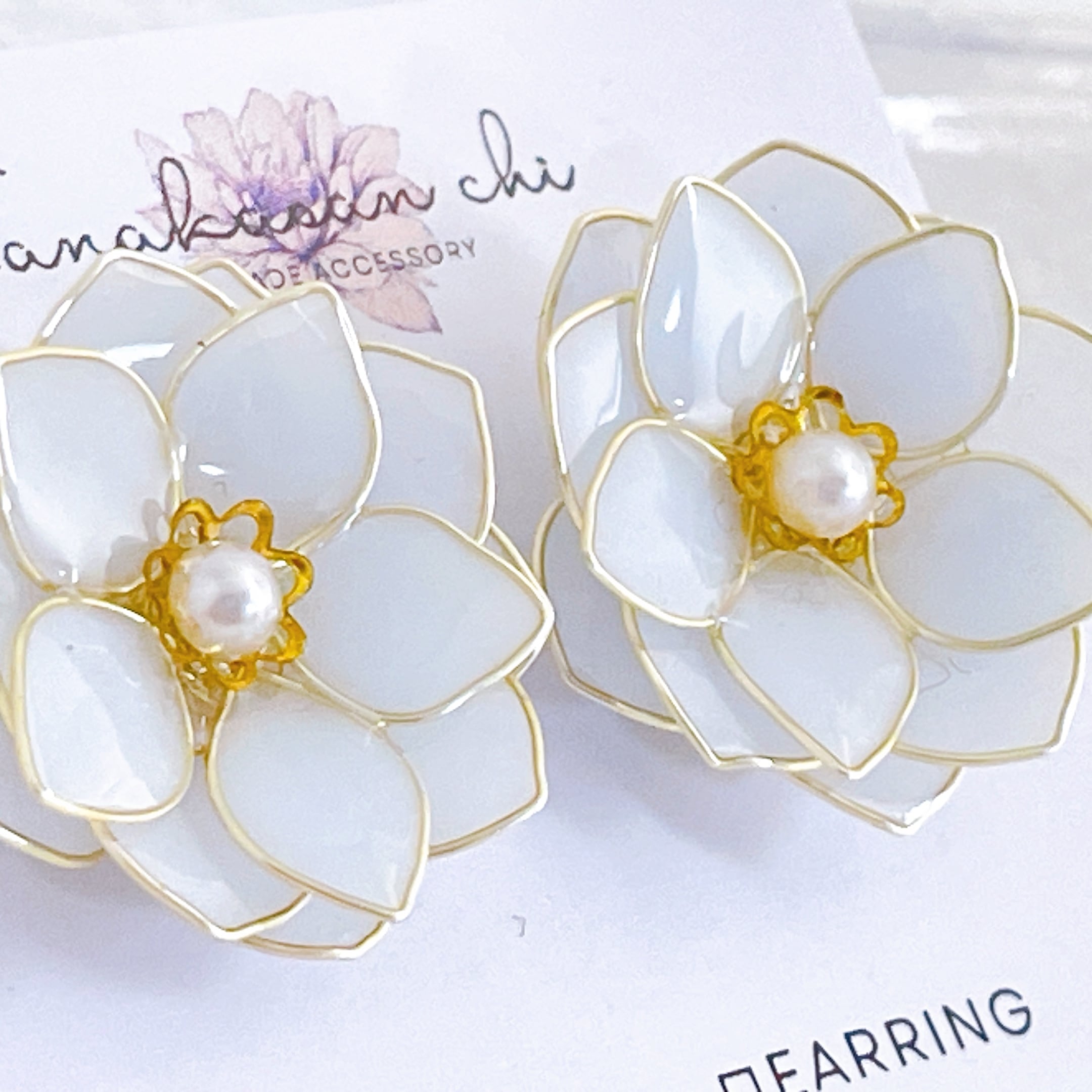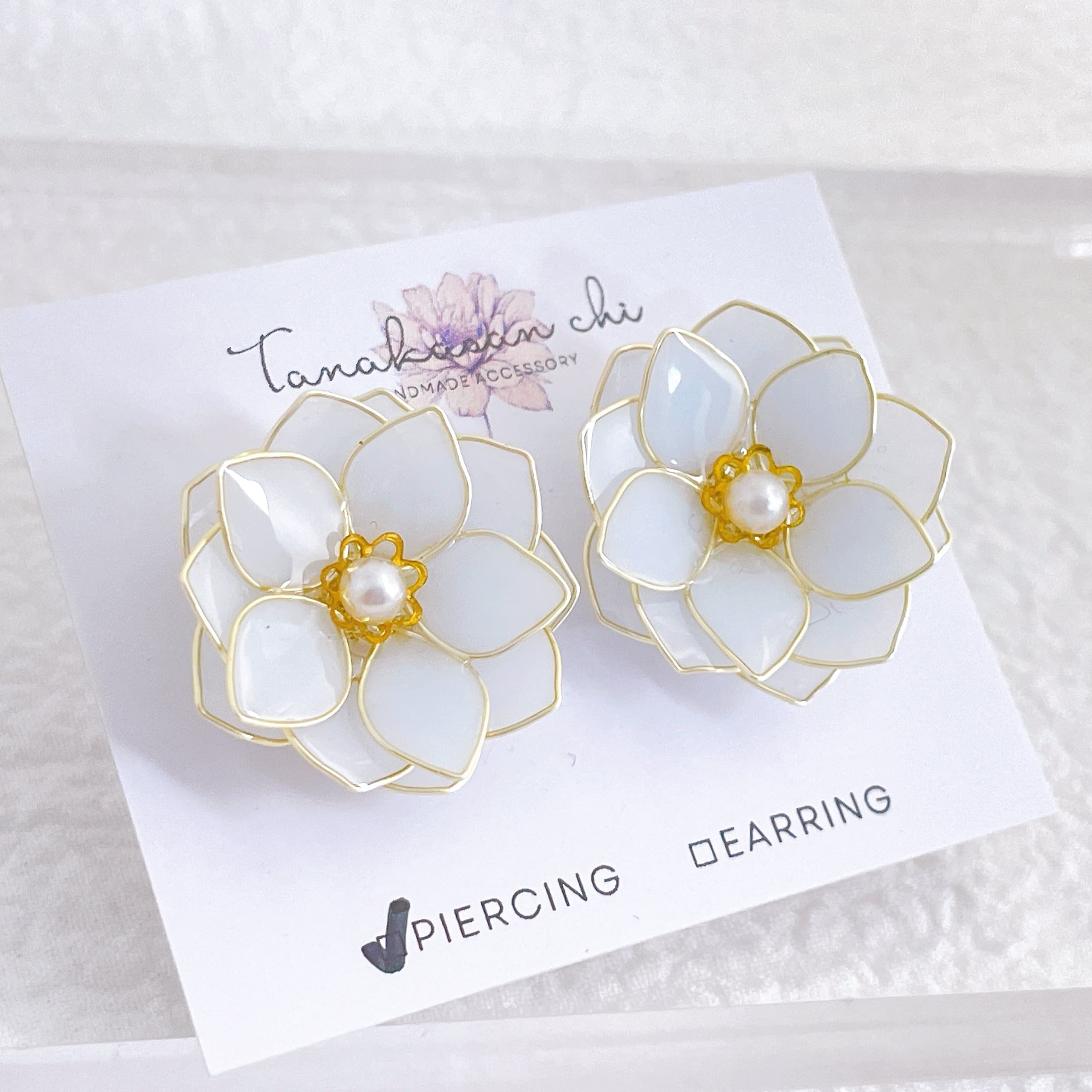 【在庫限り】 ピアスのみ 淡いクリアブルー♡のお花 ワイヤーフラワー アクセサリー