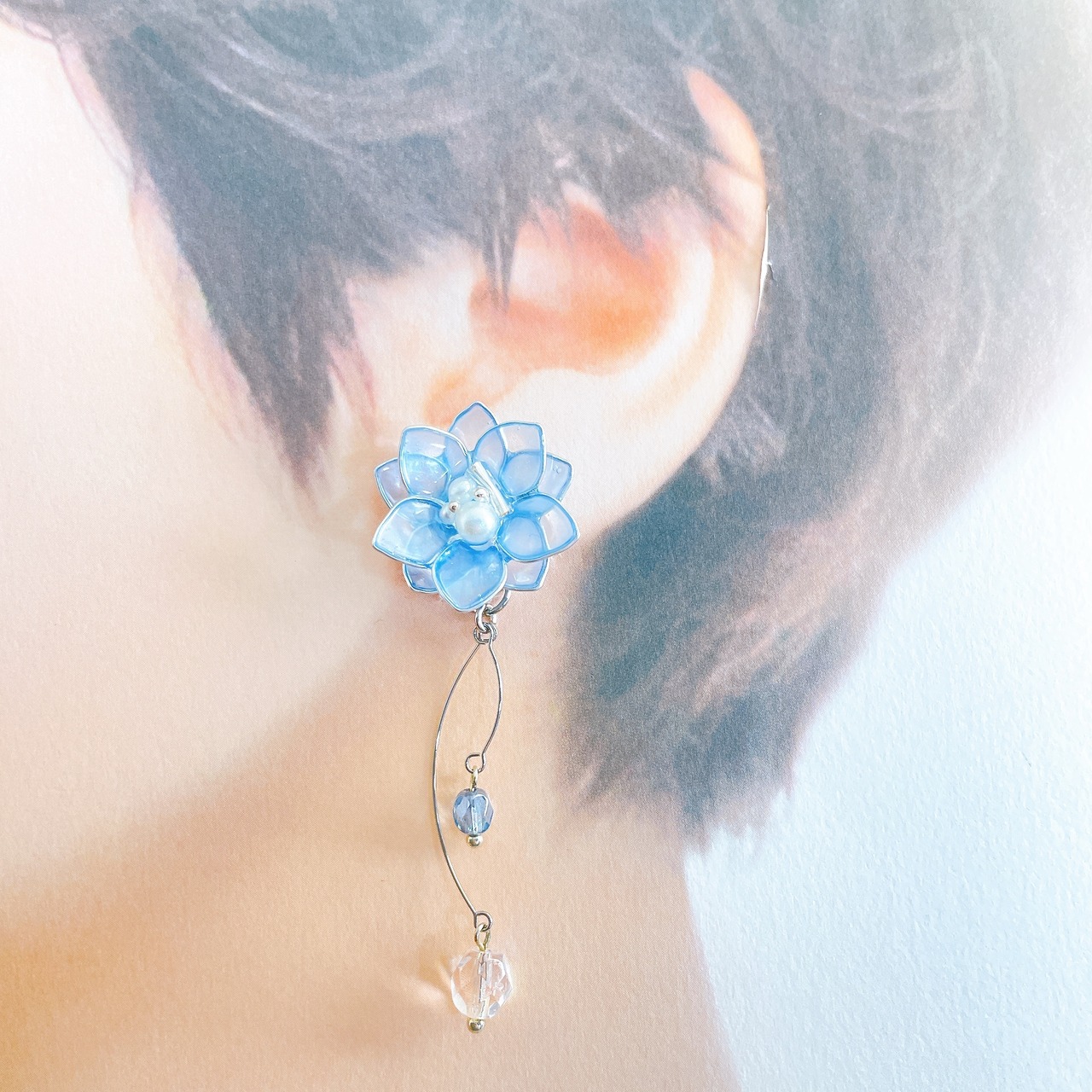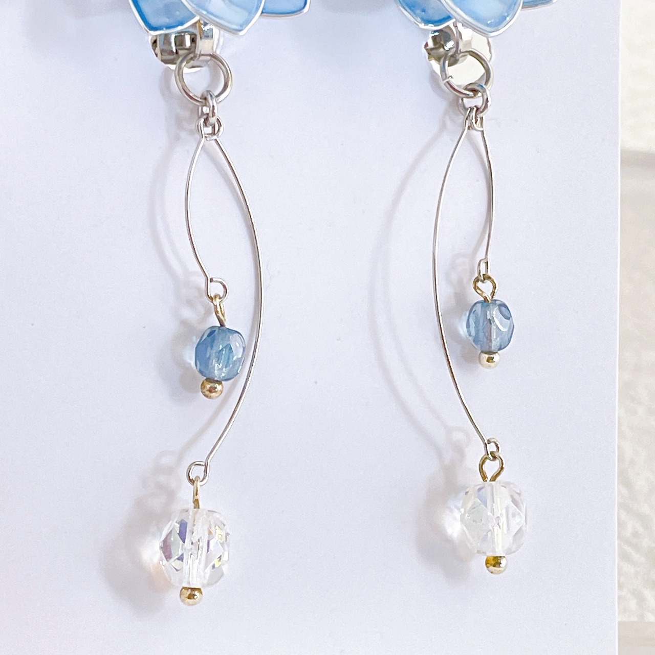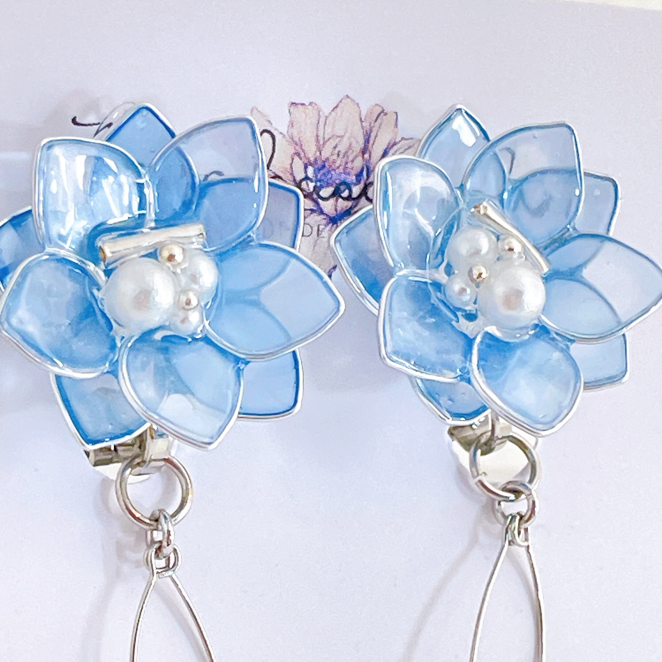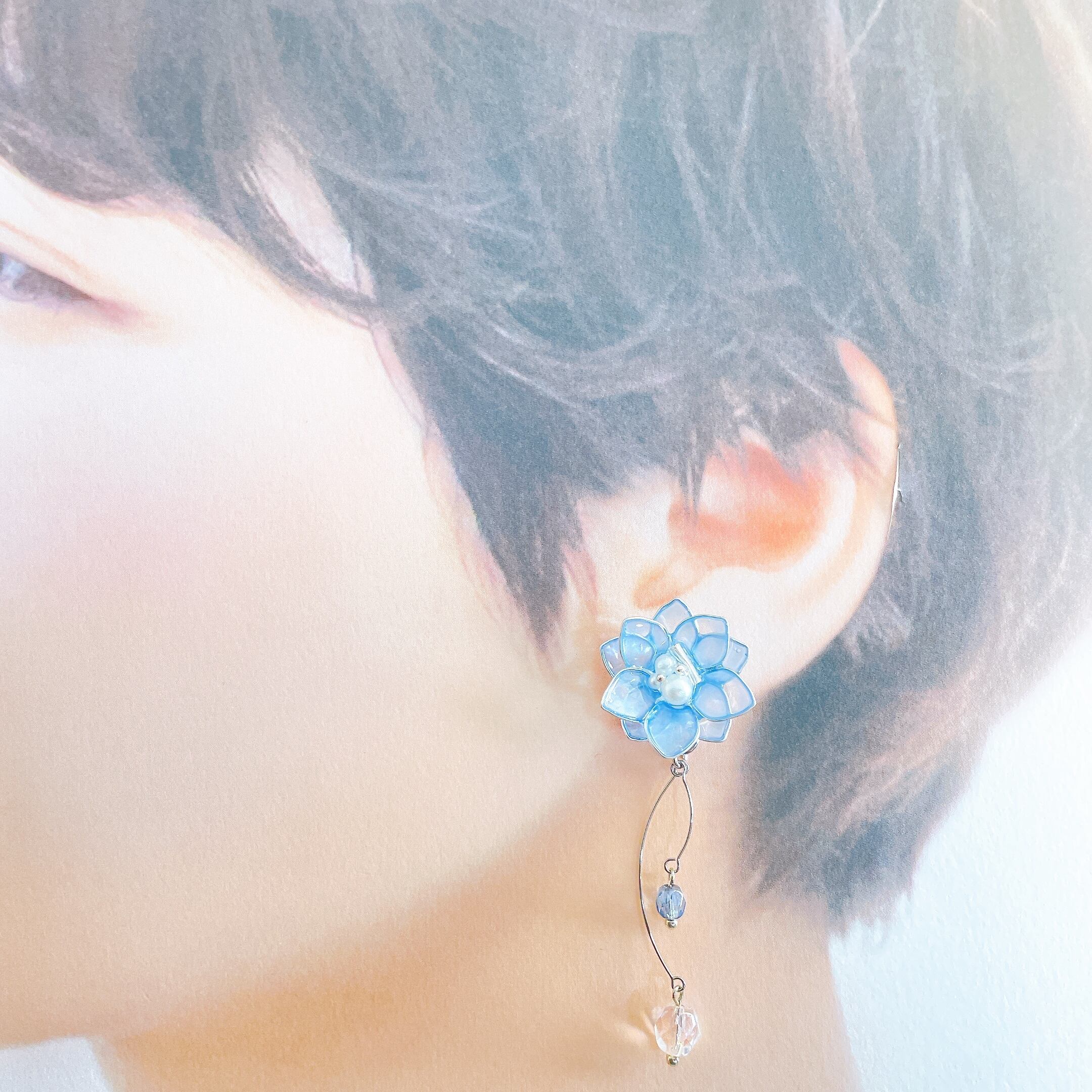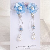 【在庫限り】イヤリングのみ ブルーの透けカラーのお花 ワイヤーフラワー アクセサリー