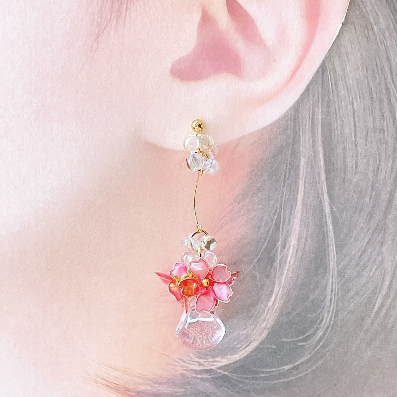 【ピンク】桜のゆらゆらアクセサリー ワイヤーフラワー アクセサリー