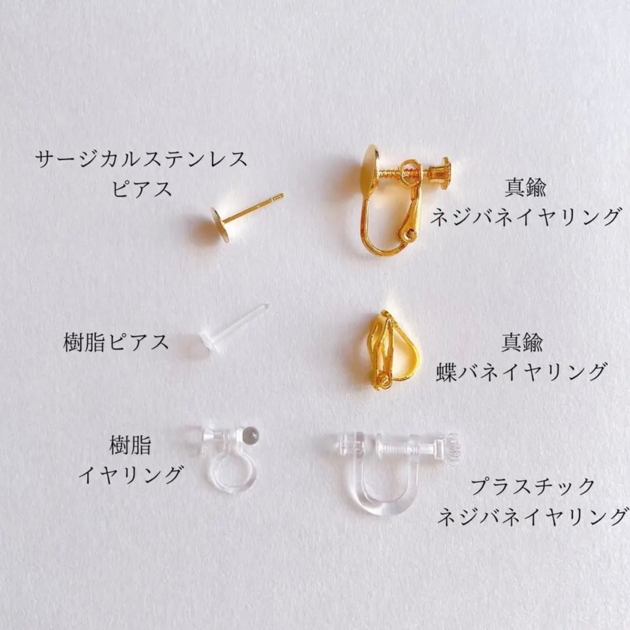 金具:真鍮にメッキ加工、サージカルステンレス(ピアス)